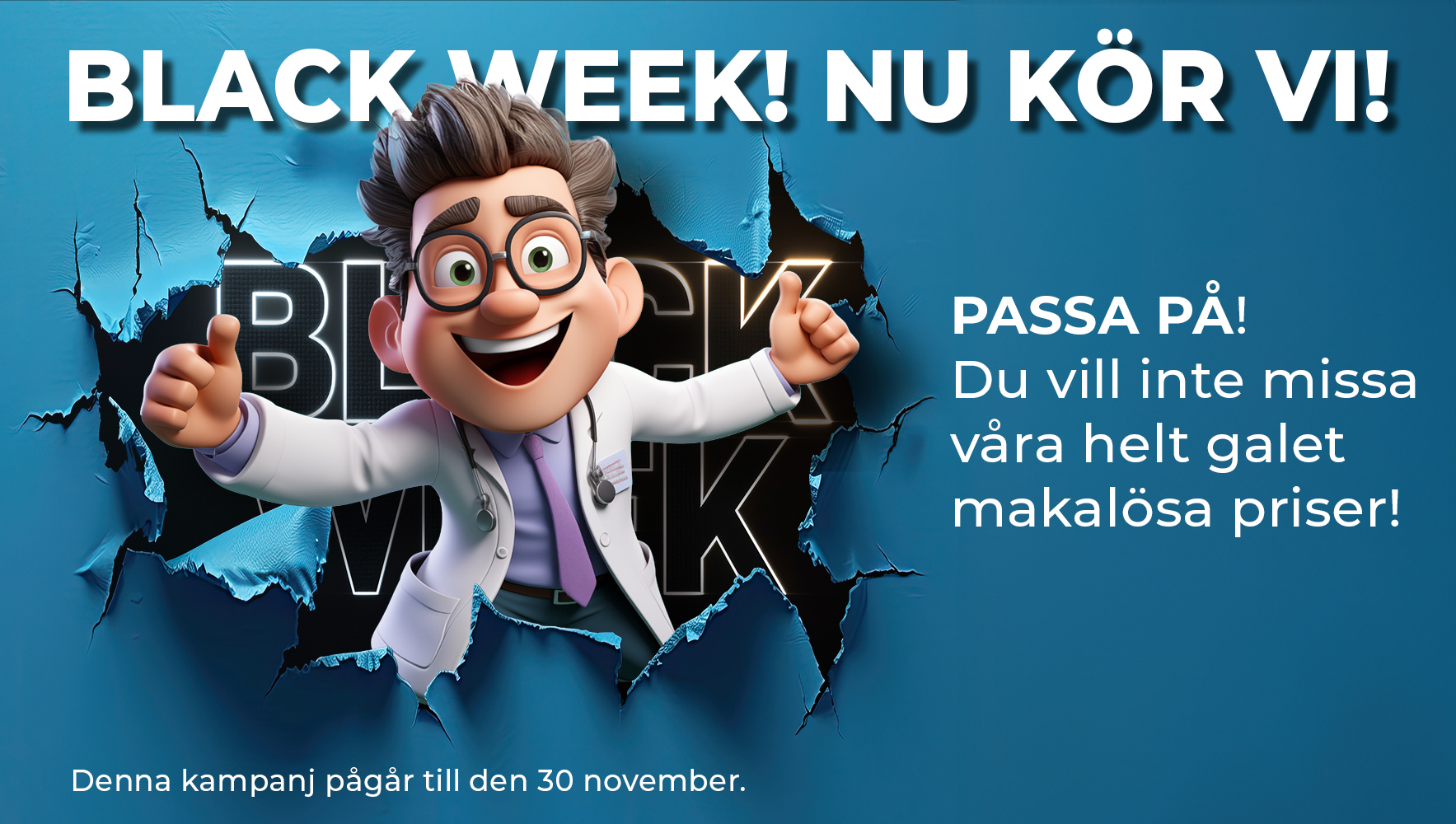 Våra Black Week-priser fortsätter även efter att vi har gått hem för dagen. Ordrar som lagts därefter packas påföljande arbetsdag.